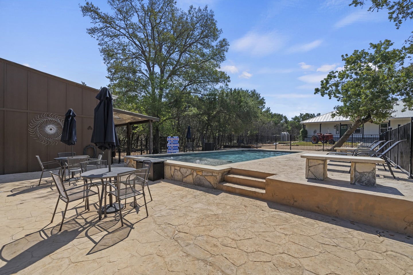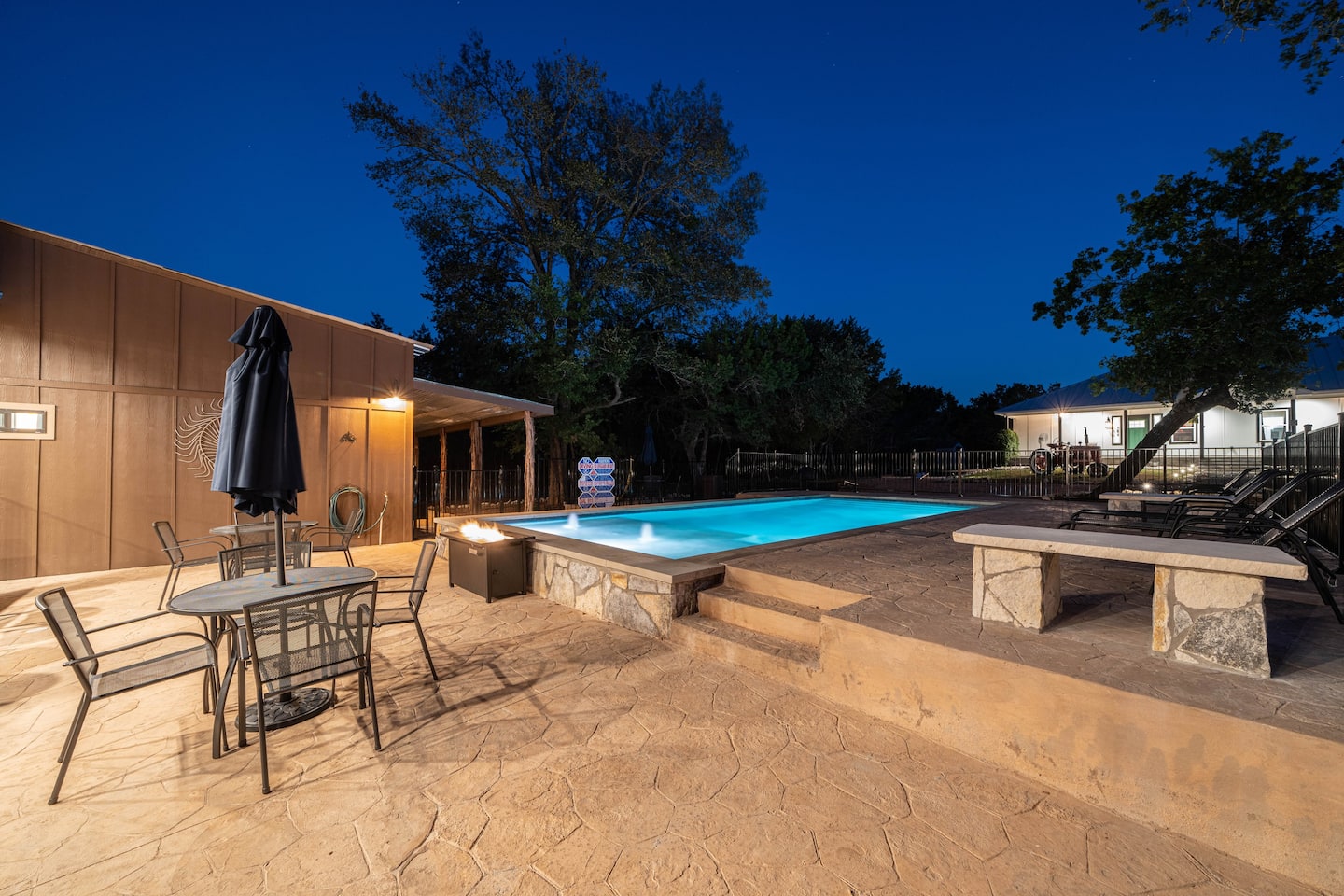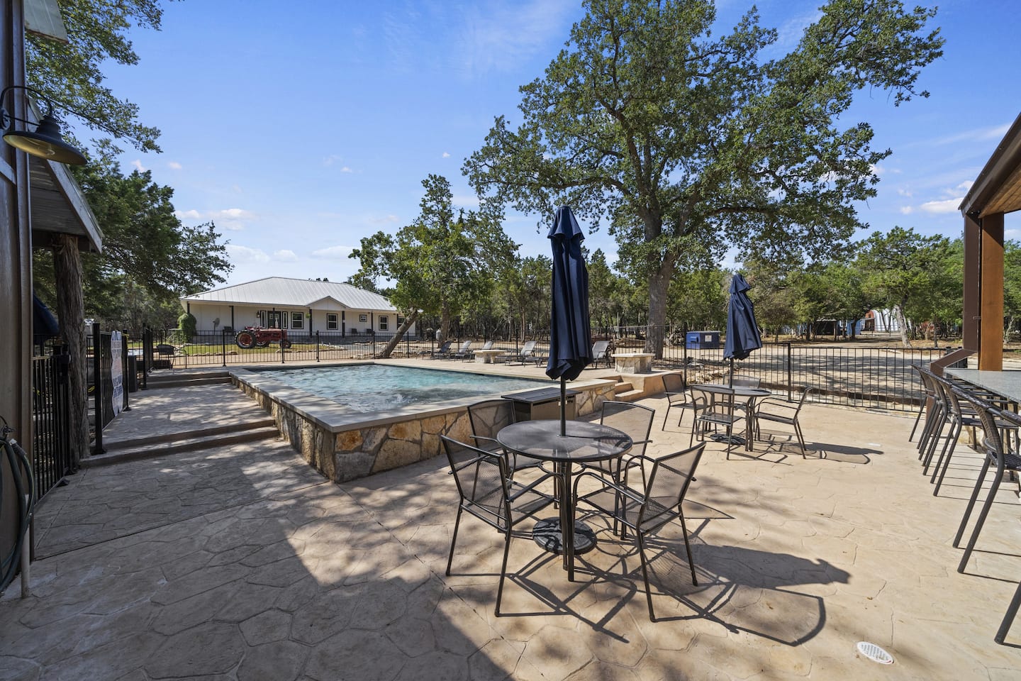 Book a stay at Terracotta Bliss in Wimberley, Texas 🌄. Perfect for large groups, this home accommodates up to 28 guests. Enjoy a fully equipped kitchen 🍳, spacious dining area 🍽️, cozy living room 🛋️, private pool 🏊♀️, hot tub 💆♂️, and peaceful outdoor spaces 🌳. Ideal for family reunions and group getaways. Reserve now for an unforgettable experience!