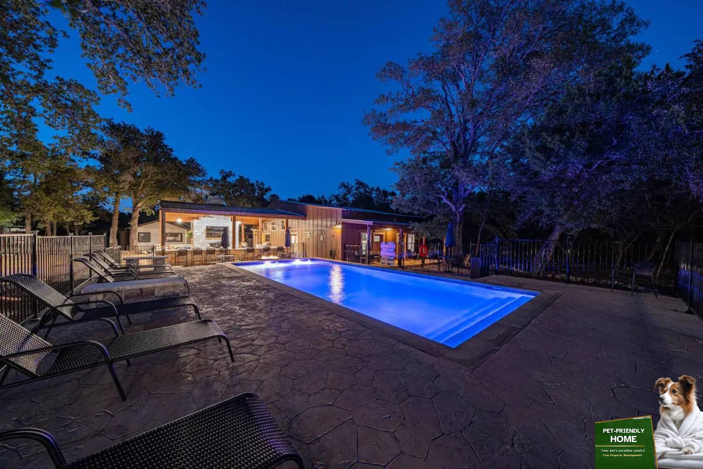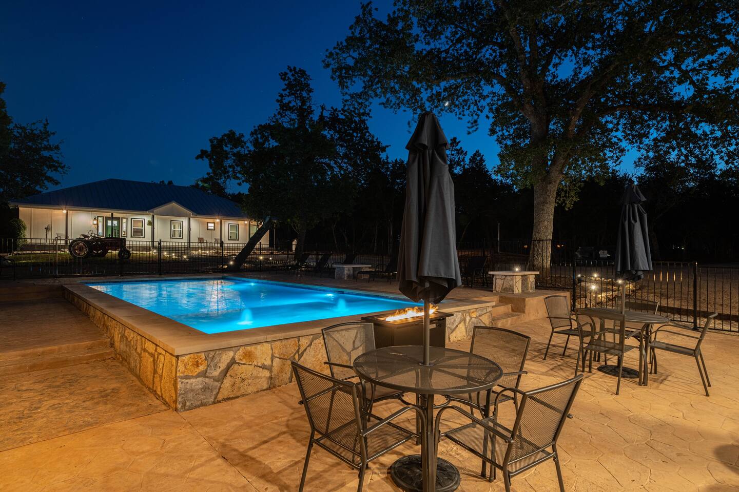 Unwind at this peaceful Wimberley retreat on Lone Man Rd 🌳. Lounge on the covered porches 🏡, cool off in the private pool 💦, and gather under the 30×40 pavilion with two fireplaces 🔥. Cook meals in the outdoor kitchen with bar seating 🍴 and take in the open views 🌅. With space for up to 8 guests 👨‍👩‍👧‍👦, it’s ideal for families or friends. Book your stay today! ✨