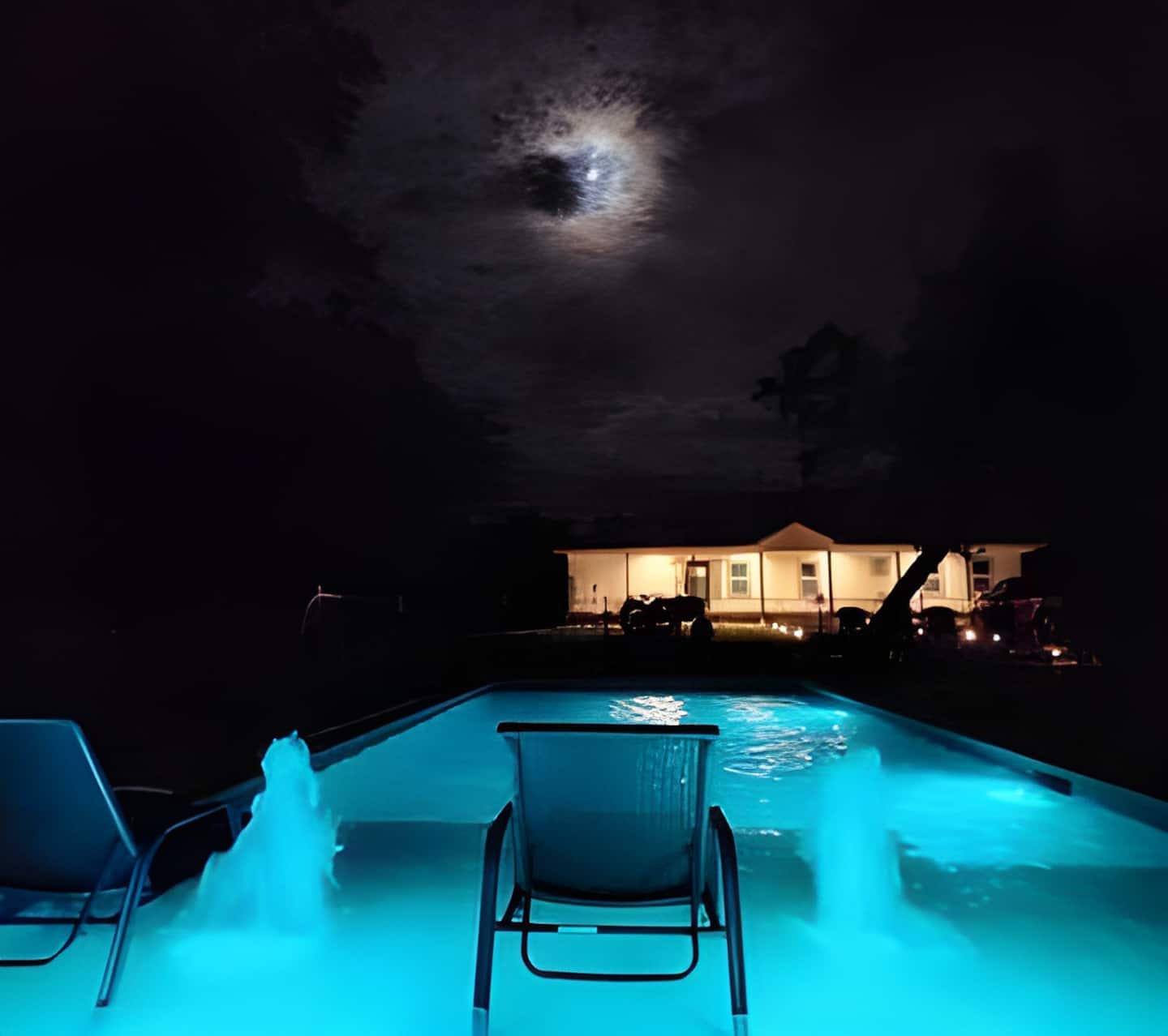 With so many adventures to be found, guests will never find themselves wondering what to do. Spend time with family swimming at the shared pool located just a short walk from the farm house. With beautiful pool lighting, fountains & an in pool tanning deck, guests may find themselves spending the entire day soaking in the sun. Spend some time playing disc golf & end the day with an evening of fun around the fire pit, enjoying popping corn, melting sβmores, or stargazing. Those who visit the charming Casa Blanca Farmhouse will agree it is a wonderful unique experience that will leave its guests smiling!