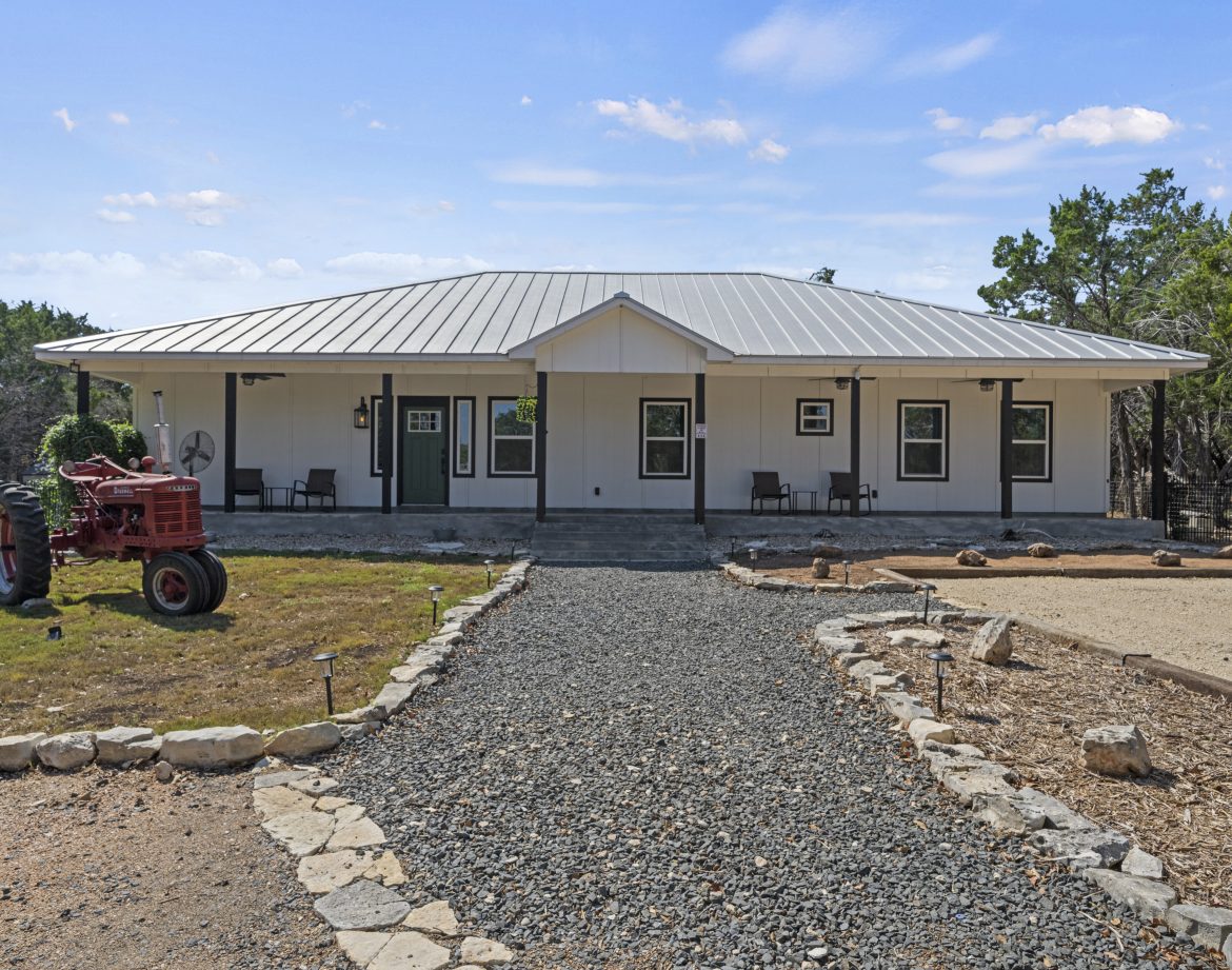 It is a stunning Wimberley vacation rental that sleeps 8 guests in comfort. Featuring spacious bedrooms, luxurious bathrooms, an inviting outdoor kitchen and bar, and an attached pool, this Hill Country getaway blends rustic charm with modern amenities for the perfect family or group escape.